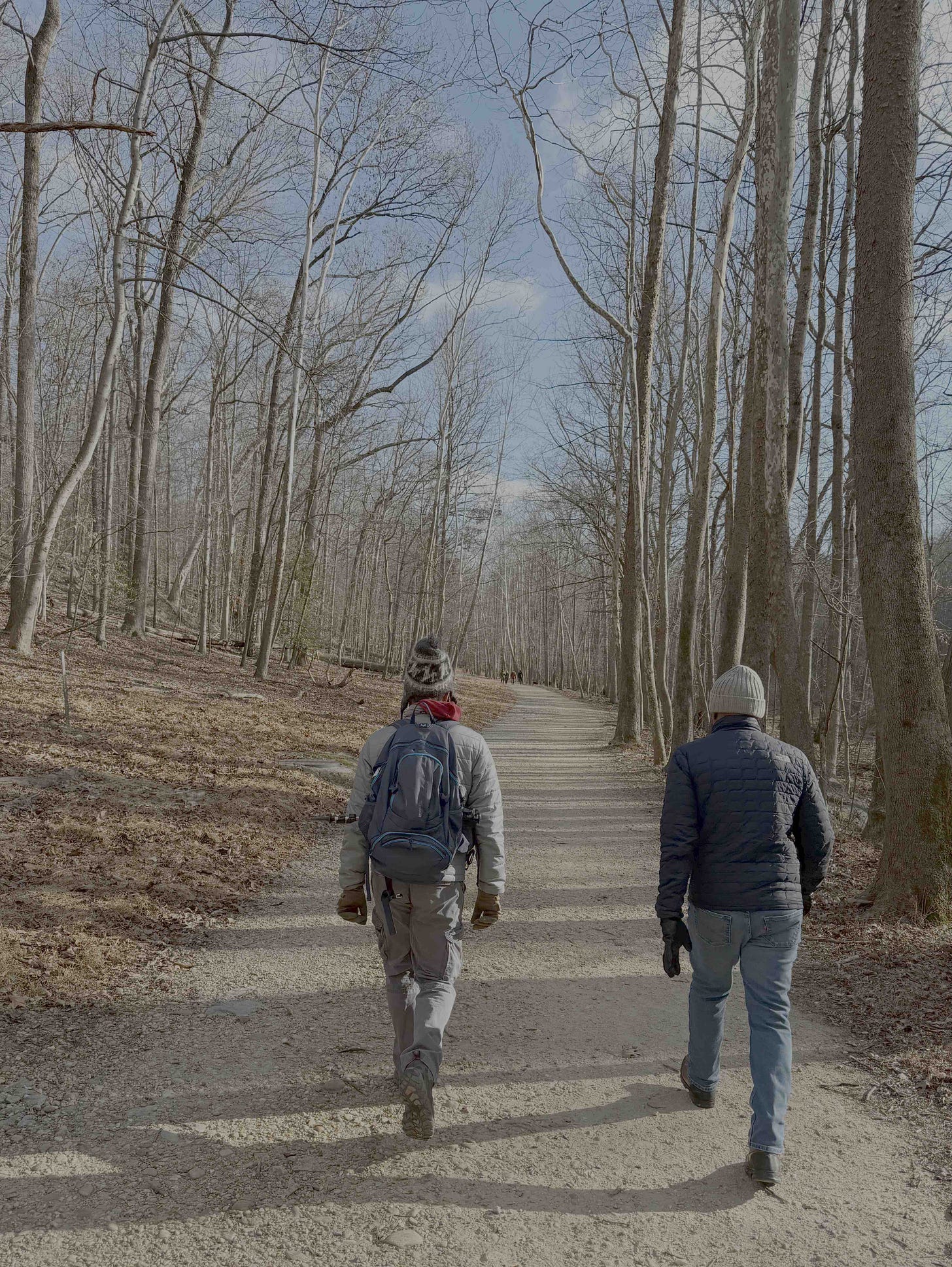 And that desire, that need to push forward, reminds me of a recent trip to Great Falls. It was right before winter announced itself. The ground and the grass were still visible. I remember being very excited by the idea of taking a longer hike. Usually, we tapped out around three miles. This one was double that, if I remember correctly.